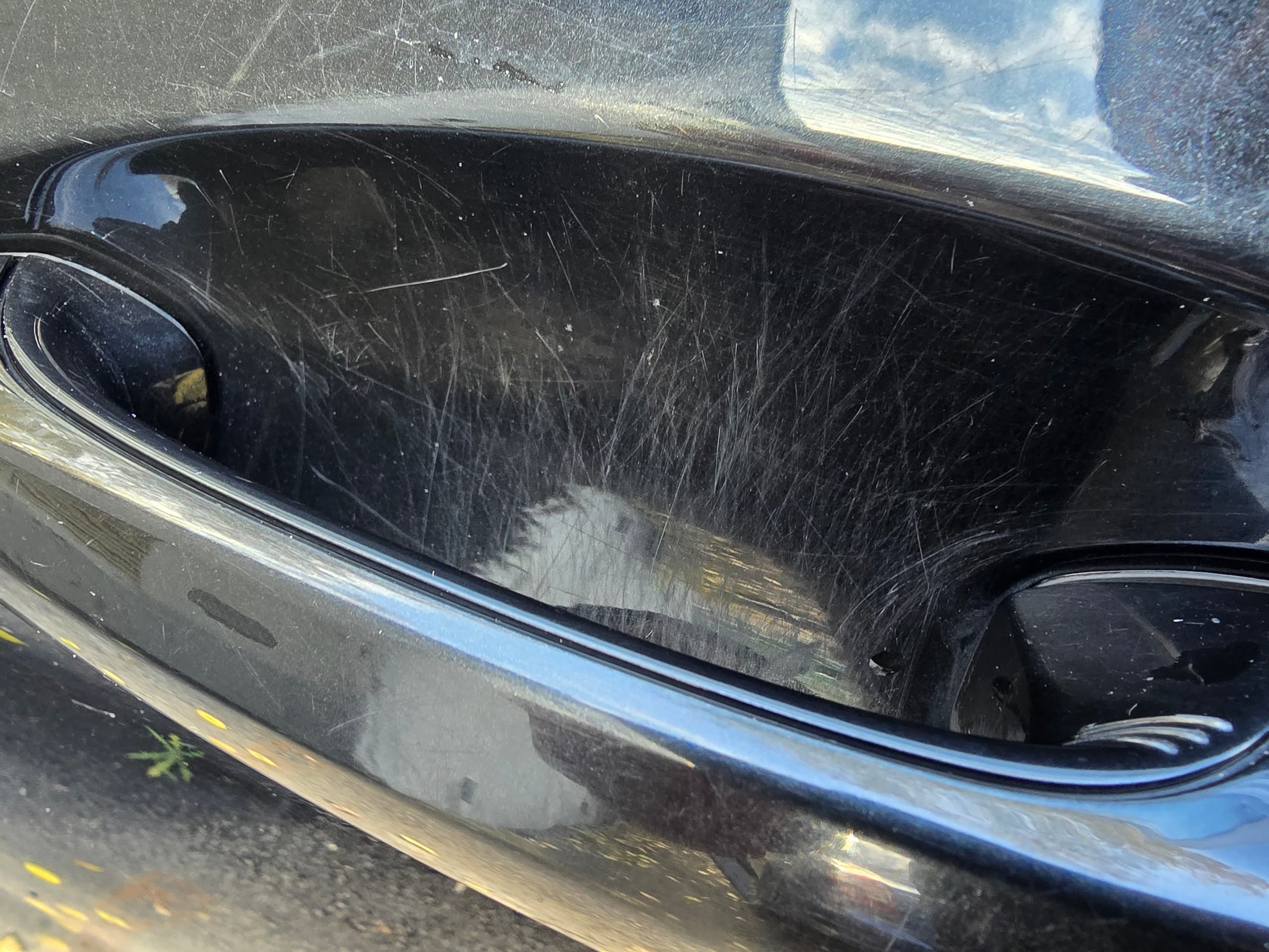 - Повреждения от пряжки ремня безопасности в проёме задней правой двери.